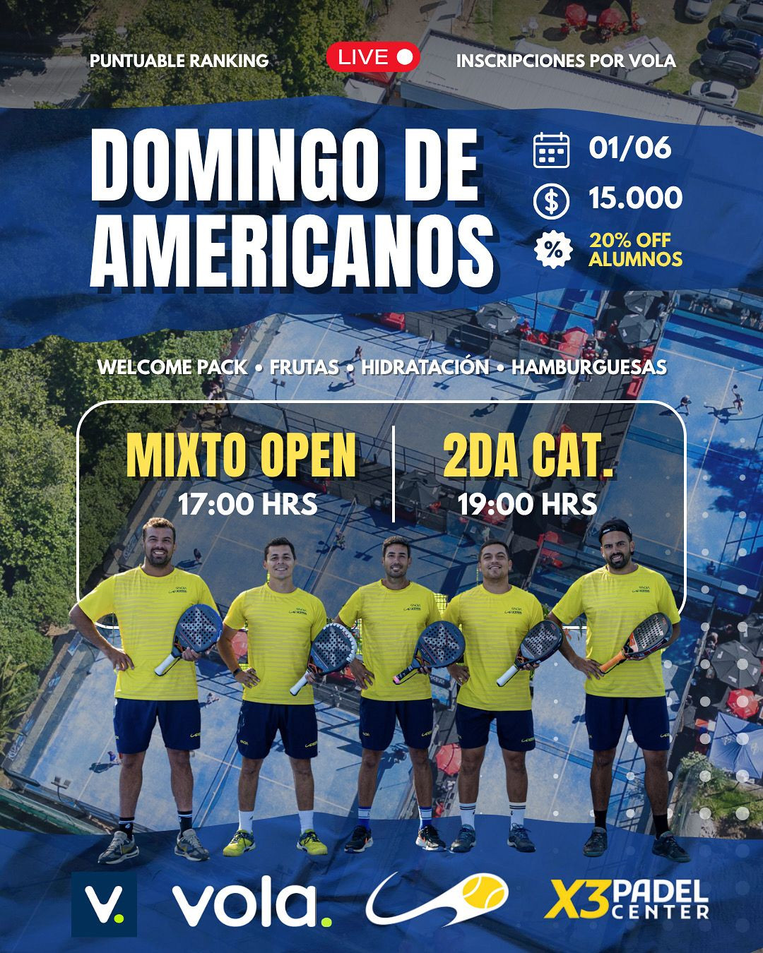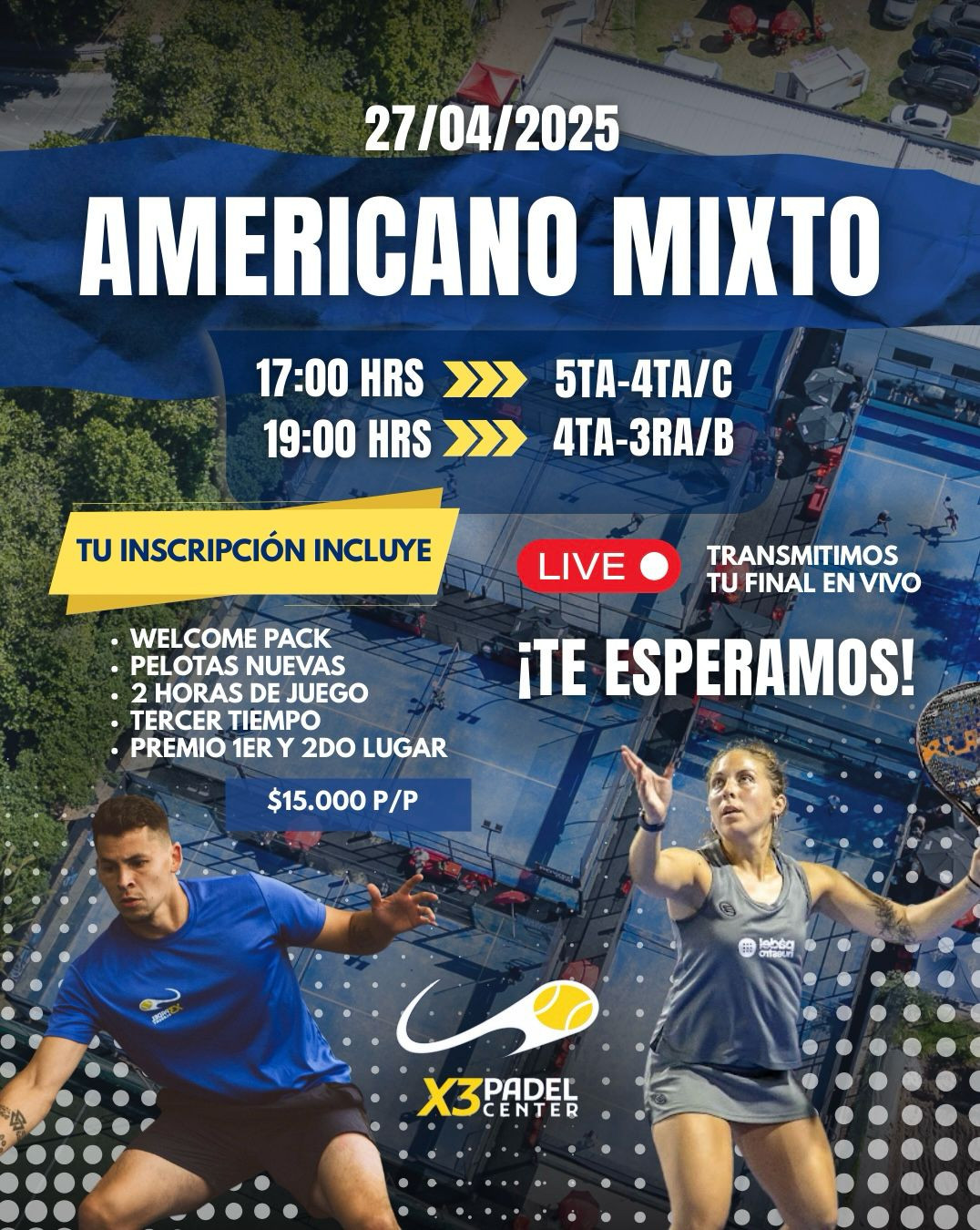 Americano puntuable Ranking X3 Padel - 4ta, Mixto Open y 2da categoría