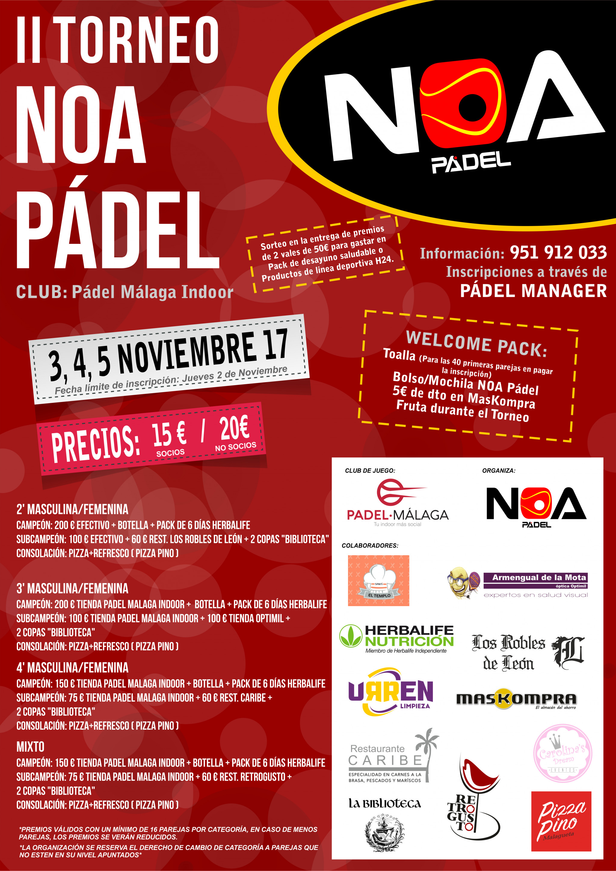 TORNEO NOA PADEL 3, 4 Y 5 NOVIEMBRE